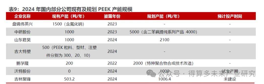 邦内诸众PEEK厂商都有扩产安插。邦内PEEK厂商搜罗中研股份、长春吉大特塑、浙江鹏孚隆、山东浩然特塑等。邦内主流厂商合计筹划产能7000吨阁下(不含二苯砜提纯系列产物)。